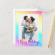 Happy Holidays in pretty pink and purple over rainbow pastel colors. Cute and colorful photo holiday postcard for an LGBT couple or LGBTQ family. Personalize with your own photograph and customized message on the back.