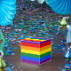 Rainbow flag, symbol of gay pride. It contains six colors: red, orange, yellow, green, blue, and purple.