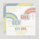 Yes, you can print on the back of your invitation for free! Most designs already have a corresponding design on the back that can be personalized using the Design Tool and going to Layers. This is a great way to communicate more information or further personalize your Rainbow Gender Reveal Invitation. The option is really up to you.