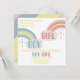 Plain white envelopes are included with paper invitations and will come to fit the invitation size you select. If you don’t need the envelopes, you may choose to not receive them by selecting the dropdown below "Envelopes" and choosing "None." If you’d like to have a design on your envelopes, you can browse all of these available envelopes to find the design that complements your Rainbow Gender Reveal Invitation.