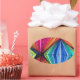 Colourful, bright graphic art illustration with hand designed geometric pattern art in diamond psychedelic bright, vivid rainbow colour scheme. This design was hand drawn and hand coloured by visual artist Sacha Grossel and was inspired by pop art and op art movements of the 1960s.