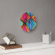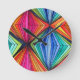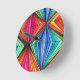 Colourful, bright graphic art illustration with hand designed geometric pattern art in diamond psychedelic bright, vivid rainbow colour scheme. This design was hand drawn and hand coloured by visual artist Sacha Grossel and was inspired by pop art and op art movements of the 1960s.