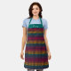 Colorful rainbow gingham pattern custom name apron. Personalize the script font with name or message. Makes a great gift for anyone! Perfect for cooking at home, hosting bbq, cooking or wine classes, arts and crafts, holiday parties, tending bar, and special events.