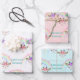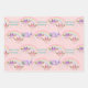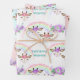 Two smiling giraffe faces, one wearing purple flowers and the other wearing pink flowers, are just below a sparkling multi color rainbow on this birthday gift wrapping paper. Add a lavender and purple bouquet and your custom text in teal, and you have a pretty wrapping paper for just about anyone. Three different background colors, white, pale pink and pale mint green, are included in the set.