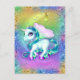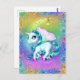 This colorful postcard features a magical, glittering unicorn with shiny aqua tail and matching mane, purple eyes and hooves and pink wings. She's posing in front of a rainbow-colored crescent moon and is surrounded by rainbow colors and sparkles. Thanks for looking! 🦄