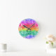 This fabulous round wall clock features agate design in rainbow colors with gold veins and glitter. Add your name and initial to personalize or delete for a clean look.