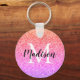 Keep up with your keys using this Rainbow Glitter Script Monogram Personalized keychain. It is modern designed with a faux glitter background. Monogram initial is in large white lettering on the center and name is in black calligraphy script lettering,