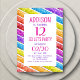 Yes, you can print on the back of your invitation for free! Most designs already have a corresponding design on the back that can be personalized using the Design Tool and going to Layers. This is a great way to communicate more information or further personalize your Rainbow Glitter Stripes Birthday Invitation. The option is really up to you.
