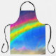 Great color and even though I ordered the kid size, it covers well enough to use during the holidays. I am not a big woman and prefer a shorter apron. I stand 5"6" and the length of the garment goes to mid-thigh. The tie straps fit well at my waist and even though there is no neck strap adjustment, the opening is plenty big enough. I am happy with the size and fit. I am sharing my apron with my 10 year old grandson, too! The color is vibrant and looks good, as shown on the website. The stitching looks strong and reinforced. Photographed is front side and back side of the apron, reinforced straps and coloring. My phone camera may not be the best at showing the details.