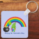 Rainbow Gnome Pot of Gold St Paddys Day Metal Sq Keychain