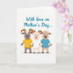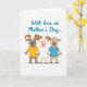 Designed with three stylized, human-like goat figures centered on a bright white background, the scene focuses on their closeness and gentle connection ❤️. One figure has soft gray fur, another is creamy white, and the third is warm light brown, all drawn with rounded features and calm expressions that suggest an affectionate bond. Two of them have curved horns decorated in rainbow colors, adding a cheerful accent above their heads. They wear simple shirts in golden yellow, white, and sky blue, and their hands sit close together as if they’re about to link or share a small squeeze. Near the top, teal lettering arches over the group and reads, “With love on Mother’s Day...,” standing out clearly against the white space 🌼. The text sits centered above the characters, leaving plenty of open space around it so the figures remain the main focus. The rainbow horns show bands of red, orange, yellow, green, blue, and purple.