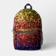 Rainbow gold red purple faux glitter sparkles Printed Backpack. Cool fashion accessory bag for her. Beautiful girly glamorous shiny glitters sparkles design. Photo of sparkles, not real glitter! Create a unique and personalized backpack with a custom touch!