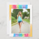 Beautiful watercolor rainbow graduation announcement with pretty, artistic paint strokes full of bright color and your senior photograph in the center. These colorful Class of 2024 cards are perfect for an artistic senior girl. Personalize this pretty card with your high school or college name.