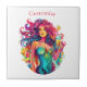 Rainbow-haired Mermaid With Cocktail Ceramic Tile
