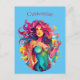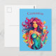 Rainbow-haired Mermaid With Cocktail Postcard