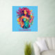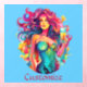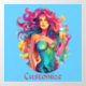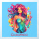Rainbow-haired Mermaid With Cocktail Art Illustration. Big hair sea siren with multicolored tresses holding a cocktail in her hand as the sea breeze fans her hair out behind her. To customize