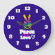 Rainbow Hand Peace Sign Peace and Love Typography Large Clock