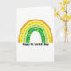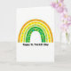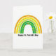 This greeting card features a large, stylized rainbow centered on a bright white background, with warm orange, sunny yellow, and several shades of green that nod to St. Patrick’s Day 💚. Each curved band is sprinkled with tiny polka dots in red, blue, yellow, and green, adding a light, confetti-like texture across the arcs. The rainbow feels like a friendly invitation, as if it’s leaning in to share a bit of luck with someone close ☘️. Beneath the rainbow, the text “Happy St. Patrick’s Day” sits centered and easy to spot. The lettering appears in a strong, dark tone that stands out clearly against the white space. The wide white margins keep the focus on the colorful arch and its dotted details. The dots are scattered evenly along the rainbow’s bands, with the greens especially noticeable near the lower curves.