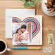 A colorful rainbow heart creates the perfect frame on this whimsical and modern Valentine's Day photo card. A simple greeting in the corner completes the design. The back of the card features a coordinating pattern of red, pink, blue, orange, and green stripes.