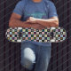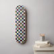 An on-trend black and white checkerboard patterned blanket with a rainbow of colored hearts give this skateboard deck a fun vibe.