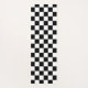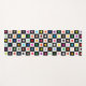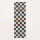 An on-trend black and white checkerboard patterned yoga mat with a rainbow of colored hearts on one side and plain black and white on the other for that retro cool skater vibe with a girly twist.