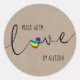 For your homemade, handmade gifts, our "Made With Love" stickers (and also made with PRIDE!) are the perfect finishing touch! This cute design features "love" in script lettering with an offset RAINBOW heart for a pop of color and matching hand lettered typography and is set on a faux Kraft™ background. The modern, stylish design will set your artisan work apart from the others, whether you make soap, jellies and jams, and other handmade presents! #Crafts #HandCrafted #SmallBusiness #Handmade
