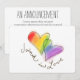 This customizable card design has a pair of joined hearts in delicate rainbow colors with the phrase "joined in love". Use as an invitation, announcement, or card for any occasion.