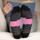 These socks are soft and comfortable. Good fit, the elastic around the calf does not leave a mark. The print is true to color, with colorful designs. The cookie trail and Christmas lights around the reindeer antlers are crisp and not blurry. .