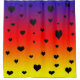 Pictured on a colorful blended opal rainbow background are black Love Hearts,