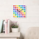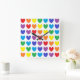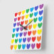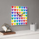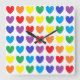 Abstract digital rows of rainbow colored hearts against a white background. Colors including red, orange, yellow, green, blues, purple.