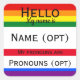 A rainbow sticker design featuring the classic words "Hello, My Name Is" but with the added “My pronouns are”. If you need your own pre-printed stickers, enter them. Otherwise, clear out the name and pronoun for general use. This allows meeting attendees to share their name and pronouns. Create an inclusive and open environment with this simple yet impactful sticker. This fosters an environment of understanding and respect, encourages open communication and helps create a more inclusive community environment.