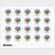 This custom sticker label features a Valentine love theme with a photograph heart frame. The background is a rainbow gradient pattern with holographic rainbow style frame. A sample photo of friends or a couple is placed in the center.