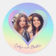 Rainbow Holographic Heart Frame Custom Photo Classic Round Sticker