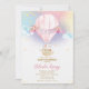 Rainbow Hot Air Balloon Baby Girl Shower Elephant Invitation