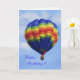 Leisure Days Out series: A rainbow-coloured hot air balloon soars into the sky, basket of balloonists pointing and enjoying. The sentiment inside reads: Birthday Greetings, Sending you Warmest Wishes on this your Special Day.