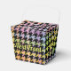 Rainbow houndstooth. Seamless pattern. Custom background color. Custom text on both sides.