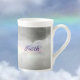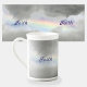 Personalized a Name or affirmations on this beautiful and delicate bone China mug and it will be highlighted beautifully against a gray stormy sky with a heavenly rainbow seen through a break in the grey storm clouds. Give the gift of a personalized rainbow.