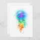 Large, iridescent, artistically drawn, bright jellyfish, with long tentacles on white, painted over with multicolored watercolor background. Rainbow jellyfish.