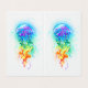 Large, iridescent, artistically drawn, bright jellyfish, with long tentacles on white, painted over with multicolored watercolor background. Rainbow jellyfish.