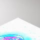 Large, iridescent, artistically drawn, bright jellyfish, with long tentacles on white, painted over with multicolored watercolor background. Rainbow jellyfish.