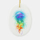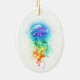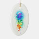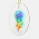 Large, iridescent, artistically drawn, bright jellyfish, with long tentacles on white, painted over with multicolored watercolor background. Rainbow jellyfish.