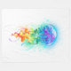 Large, iridescent, artistically drawn, bright jellyfish, with long tentacles on white, painted over with multicolored watercolor background. Rainbow jellyfish.