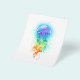 Large, iridescent, artistically drawn, bright jellyfish, with long tentacles on white, painted over with multicolored watercolor background. Rainbow jellyfish.