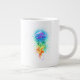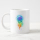 Large, iridescent, artistically drawn, bright jellyfish, with long tentacles on white, painted over with multicolored watercolor background. Rainbow jellyfish.