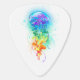 Large, iridescent, artistically drawn, bright jellyfish, with long tentacles on white, painted over with multicolored watercolor background. Rainbow jellyfish.