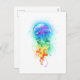 Large, iridescent, artistically drawn, bright jellyfish, with long tentacles on white, painted over with multicolored watercolor background. Rainbow jellyfish.