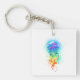 Large, iridescent, artistically drawn, bright jellyfish, with long tentacles on white, painted over with multicolored watercolor background. Rainbow jellyfish.