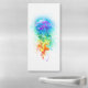 Large, iridescent, artistically drawn, bright jellyfish, with long tentacles on white, painted over with multicolored watercolor background. Rainbow jellyfish.
