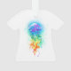 Large, iridescent, artistically drawn, bright jellyfish, with long tentacles on white, painted over with multicolored watercolor background. Rainbow jellyfish.