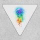 Large, iridescent, artistically drawn, bright jellyfish, with long tentacles on white, painted over with multicolored watercolor background. Rainbow jellyfish.